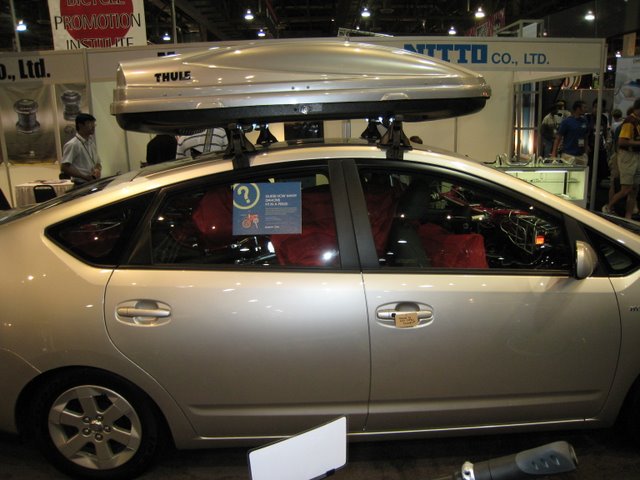 Josh Hon is positioning Dahon as a "Green" company. Guess how many Dahon bicycles fit into a Prius and win two bikes (but not the car). I guessed 27.