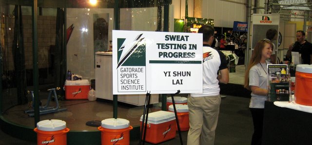 Gatorade forgot to train the booth personnel that they hired in Vegas to staff their booth. Gatorade is trying to get into the higher end sports drinks. Lots of nutrition and sports drink manufacturers were at the show. Lots of free samples so the crowed was well hydrated thanks to the babes with trays of cups walking around.