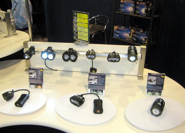 This is an LED flare used by police departments. The guy told me that after a lot of cyclists began buying their products they decided to exhibit at the show. Unfortunately there is no bicycle bracket for this device, you can hang it from the seat with a zip tie.