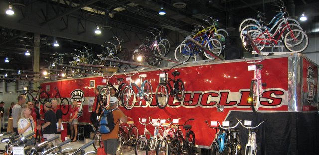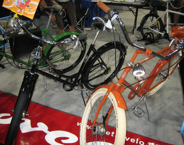 One of the many "shopper" bikes at the show. Pity the person that thinks a shopper bike should be a low-priced item. You have to pay big time to be retro-cool.