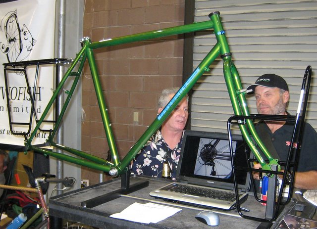 I was surprised to see long time touring bicycle manufacturer Bruce Gordon at the show. He is coming out with a lower cost touring bicycle with a frame made to his specifications in Taiwan.