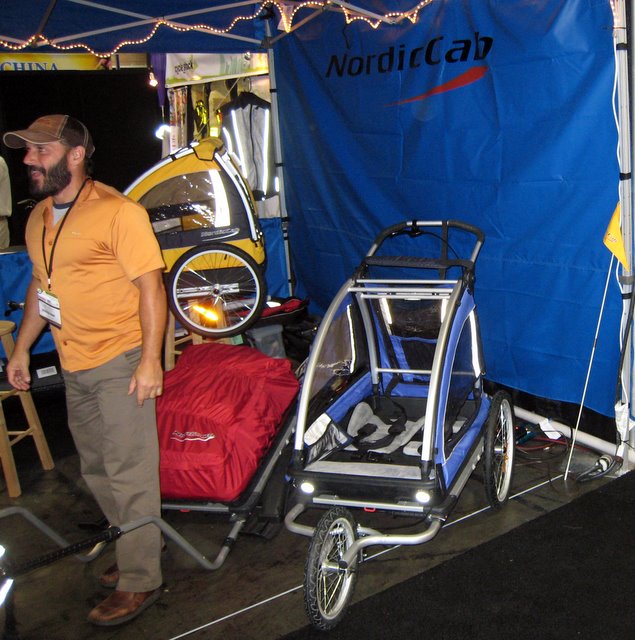 The Madsen guy told me that they hauled in their whole booth on the back of their bicycles, and that the booth was specifically designed for this type of transport (note the panels in the wall). At the Shanghai bike show, the show company built all custom booths for every exhibitor then destroyed them all after the show.
